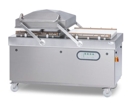MAQUINARIADebido al diseño con dos campanas de vacío, las máquinas de doble campana permiten un rendimiento de envasado muy elevado.